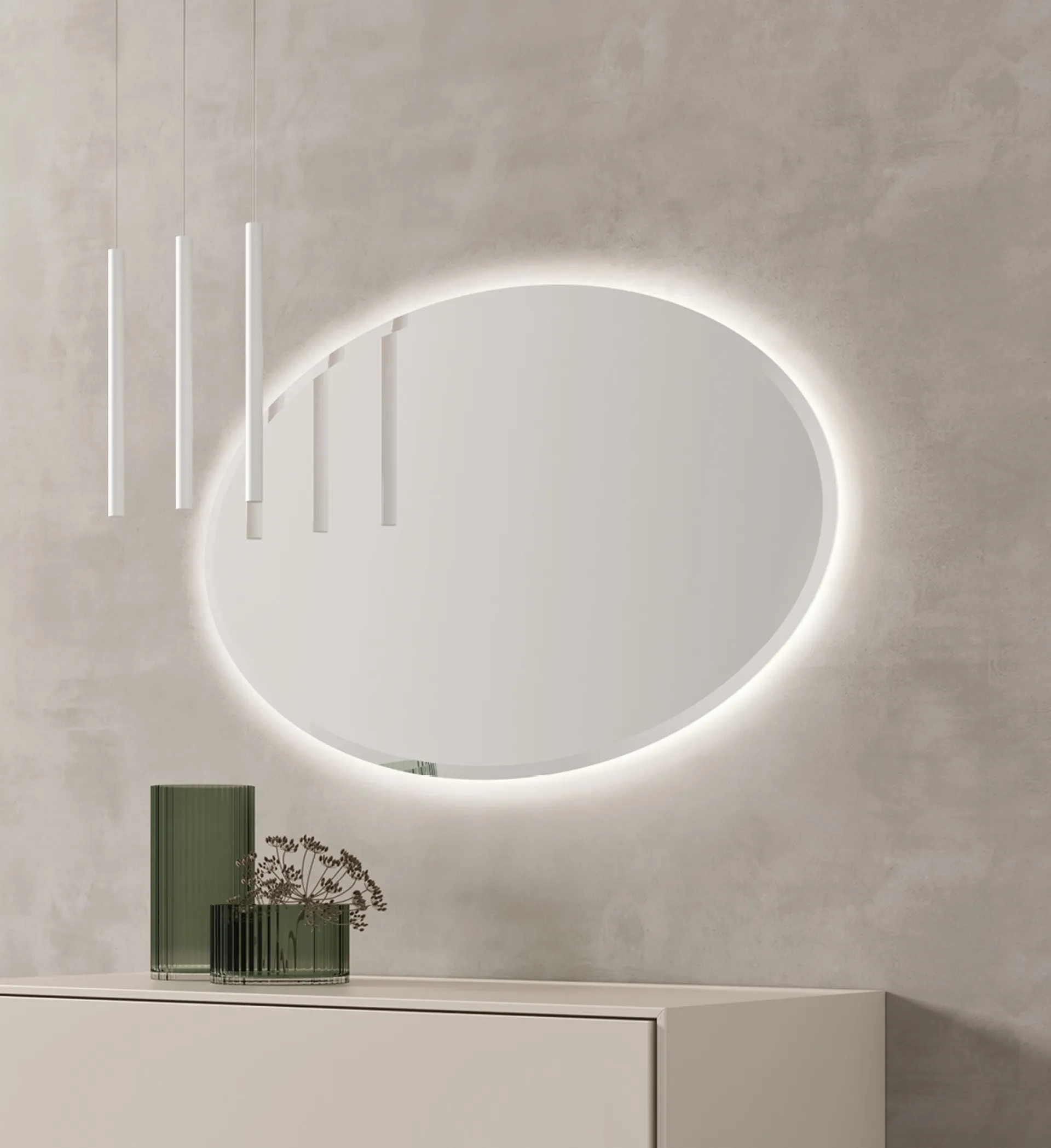Particolarmente versatili e plurifunzionali, i Complementi moderni senza cornice rispondono a funzioni differenti: completano le qualità pratiche e l'estetica dell'ambiente. Complementi e specchi personalizzano l'arredo di casa, riempiendo lo spazio in modo utile e rendendolo accogliente e di grande valore estetico. In negozio potrai visionare in prima persona l'eccellenza dei modelli di specchi moderni senza cornice della firma, proprio come questa proposta in foto. Specchiera Ovale di Maronese senza cornice: conferirà personalità e fascino a un interno ammobiliato con mobili e complementi dai richiami moderni.