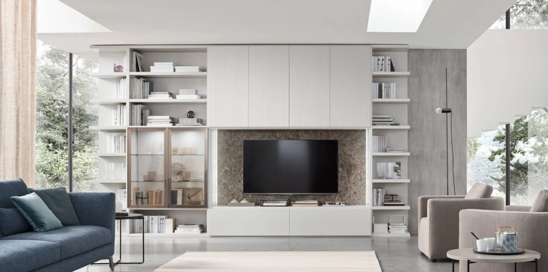 Le Pareti Attrezzate hanno acquisito un posto fondamentale nella zona giorno delle nostre case: sono arredi plurifunzionali e salvaspazio sempre realizzabili su misura per te. Questa parete attrezzata è una delle soluzioni dell'azienda e ti permetterà di arredare il soggiorno seguendo le più particolari esigenze abitative. Attraverso un gioco dinamico di accostamenti fra elementi a giorno o vani chiusi, le Pareti Attrezzate moderne arredano il living ottimizzando ogni spazio.